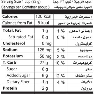 القمح – البيض – اللبن – الصويا – المكسرات – مواد حافظة – بدون إضافات صناعية
