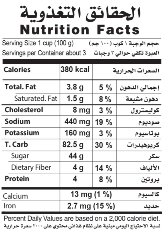 دقيق الارز - نشا الذرة - نشا التابيوكا - سكروز - ملح - بيكنج بودر خالى من الجلوتين - فانيلين - مستحلب غذائي من اصل نباتى - مثبتات غذائية